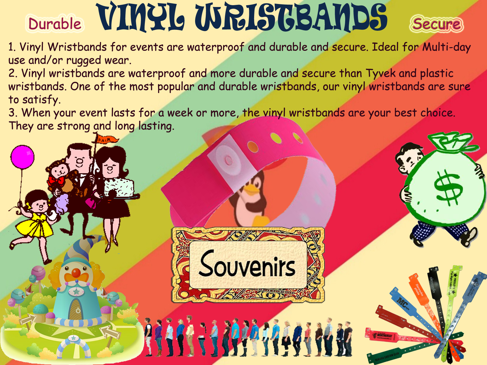Vinyl Wristbands are waterproof, long lasting and secure for multi day usage or as rocky wear, when the user wishes to show himself a unique identification.Our quality wristbands provide accordingly a comfortable and durable for a long term usage. The presence of single usage lock gives security restricts transfer.